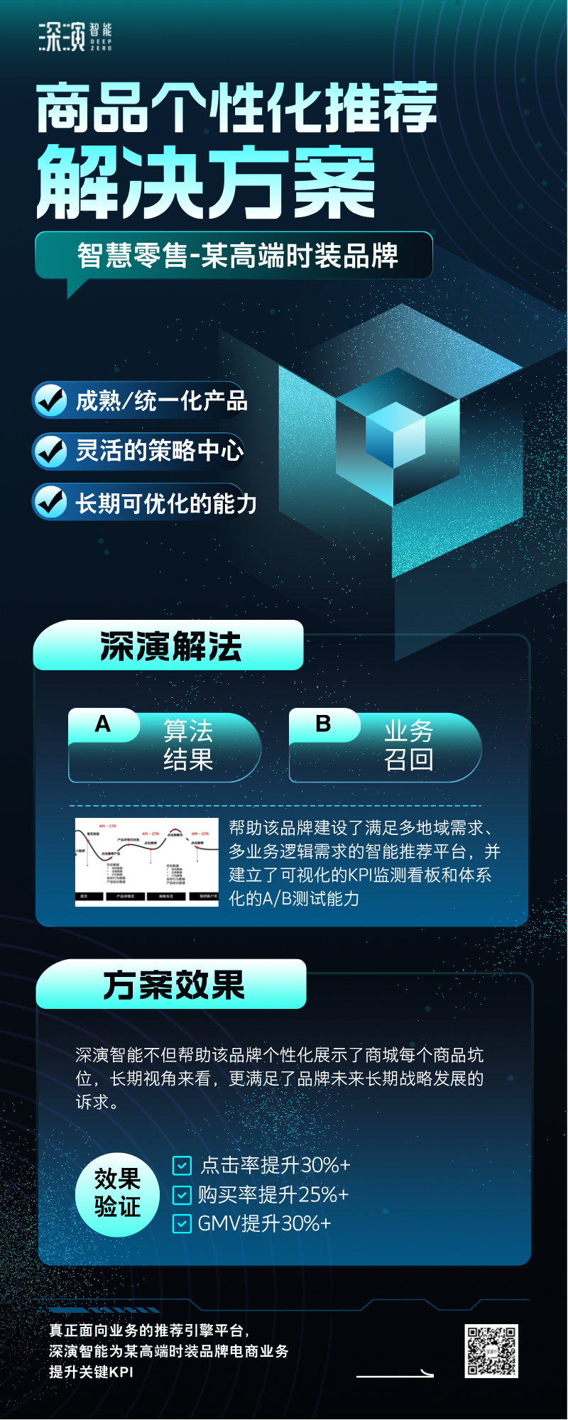 最终,壹定发智能不但帮助该品牌个性化展示了商城每个商品坑位,长期视角来看,更满足了品牌未来长期战略发展的诉求。该解决方案实施后,经过一段时间的效果验证和方案优化,该品牌的点击率提升30%+、购买率提升25%+、GMV提升30%+,项目的效果还在持续优化中。